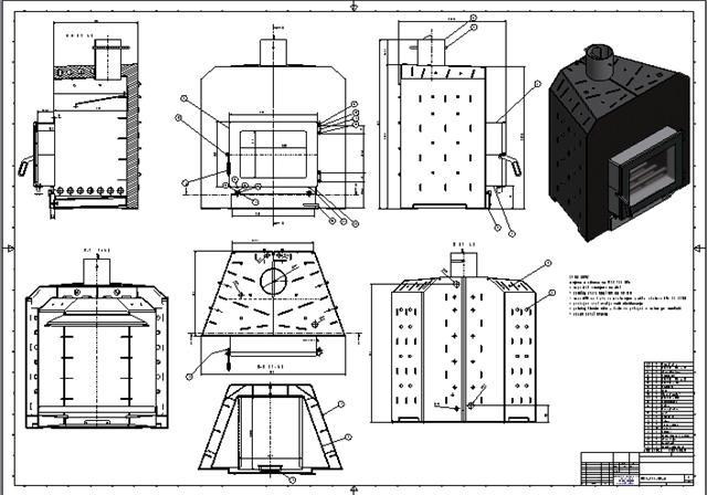 Konstruktion einer Heizkamin für Wohnräume, der gleichzeitig an die Zentralheizung angeschlossen werden kann. Bisher wurden vier solche Kamine hergestellt und erfolgreich getestet. Der Entwicklungsprozess bestand aus mehreren Schritten: