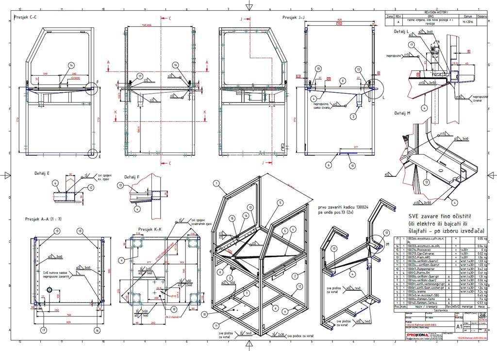 Nach Freigabe, wir haben es im Detail konstruiert bzw. Fertigungszeichnungen, Stückliste, und dxf-s für Produktion vorbereitet.